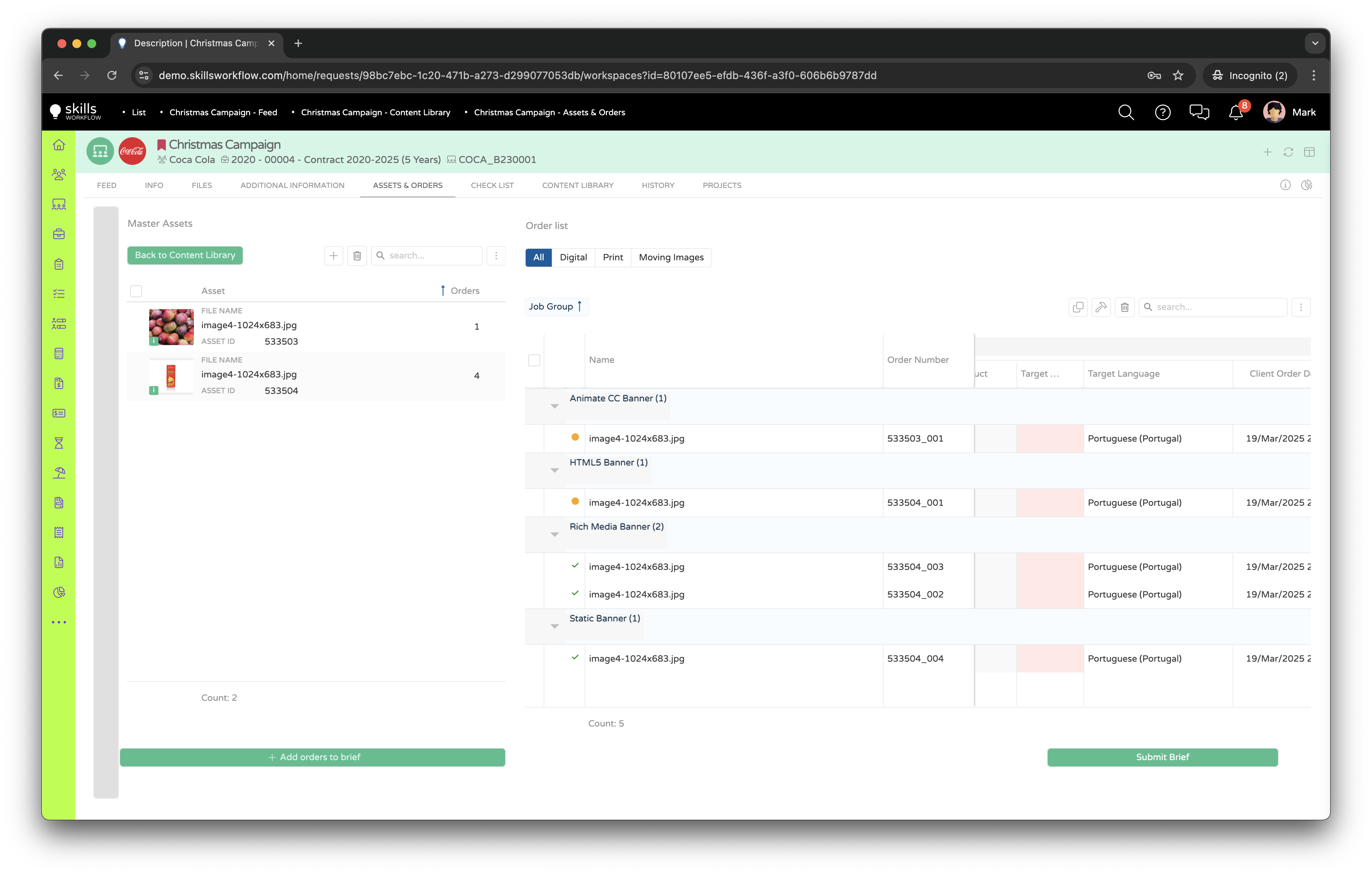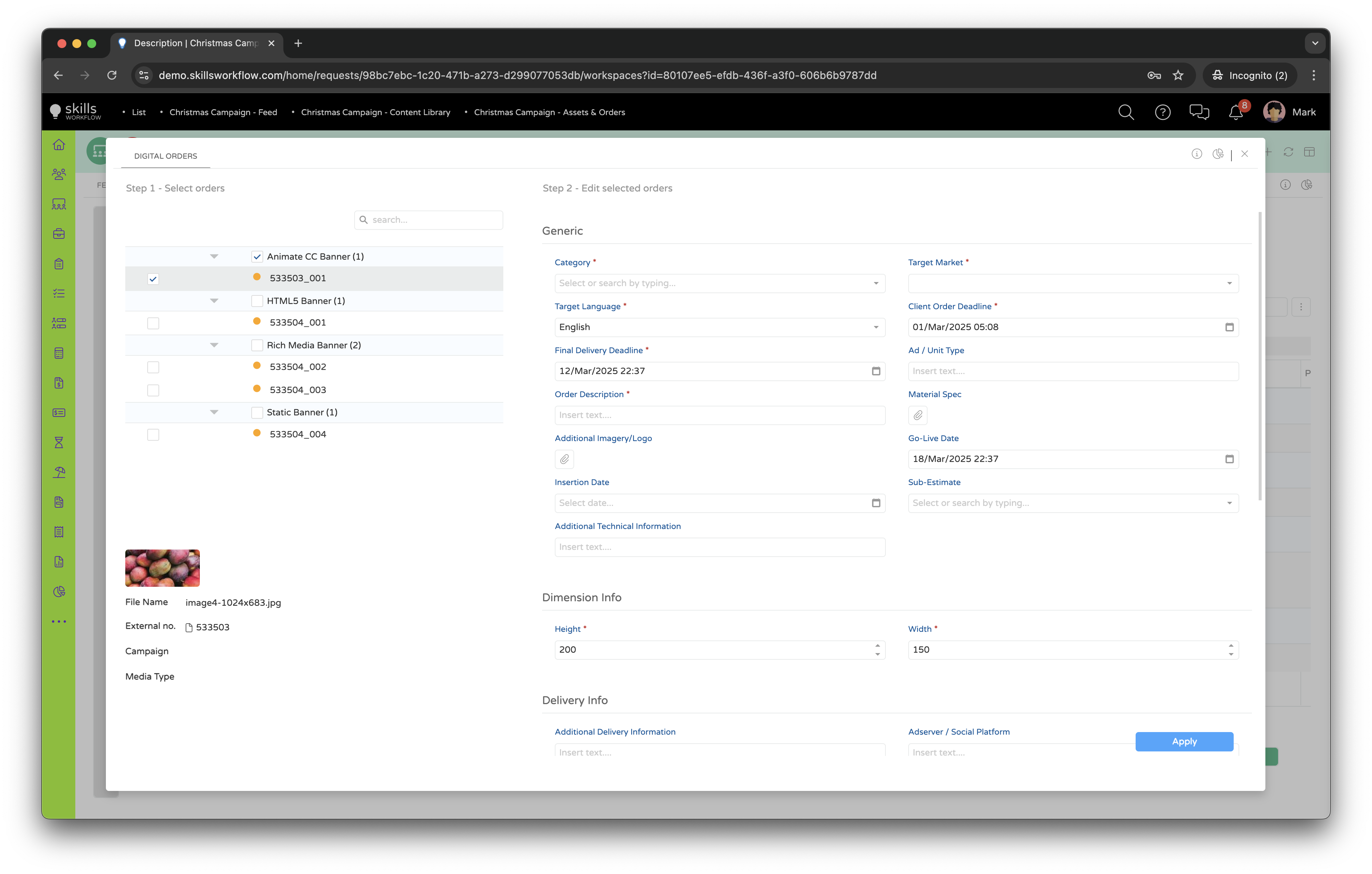 - Enable the creation of assets selection into 'shopping carts' for batch management.